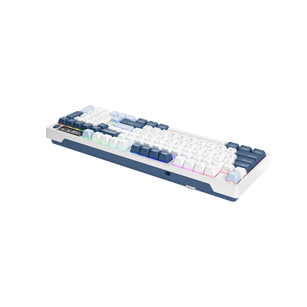 Machenike K600G-B97 có thiết kế hiện đại với sự kết hợp giữa màu trắng và xanh dương, mang đến vẻ ngoài tinh tế, sang trọng và phù hợp với nhiều phong cách setup khác nhau. Các đường nét trên bàn phím được thiết kế góc cạnh, mạnh mẽ nhưng vẫn mang đến sự thoải mái khi sử dụng.