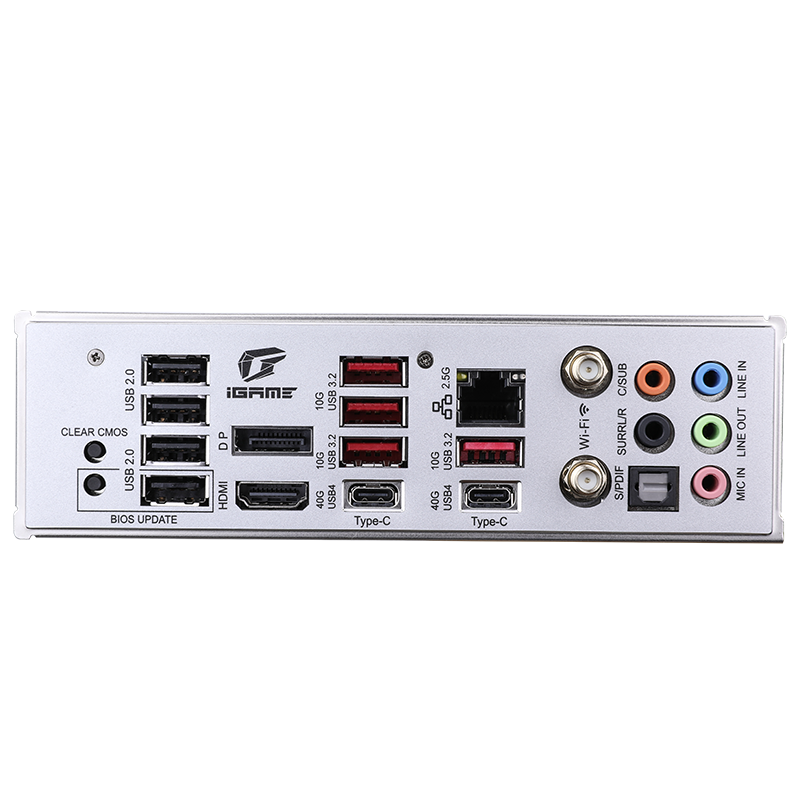 Bo mạch chủ này cung cấp 1 khe PCIe 5.0 x4 M.2 SSD và 4 khe PCIe 4.0 x4 M.2 SSD, cho phép bạn mở rộng dung lượng lưu trữ với tốc độ truyền tải dữ liệu nhanh chóng. Ngoài ra, iGame Z890 FLOW V20 còn được trang bị 2 cổng USB4 40Gbps Type-C ở phía sau, hỗ trợ xuất video với độ phân giải lên tới 4K 60Hz, cùng với 1 cổng USB 3.2 Gen 2×2 20Gbps Type-C ở phía trước, hỗ trợ sạc nhanh PD3.0 @30W, cung cấp trải nghiệm kết nối linh hoạt và tốc độ cao.