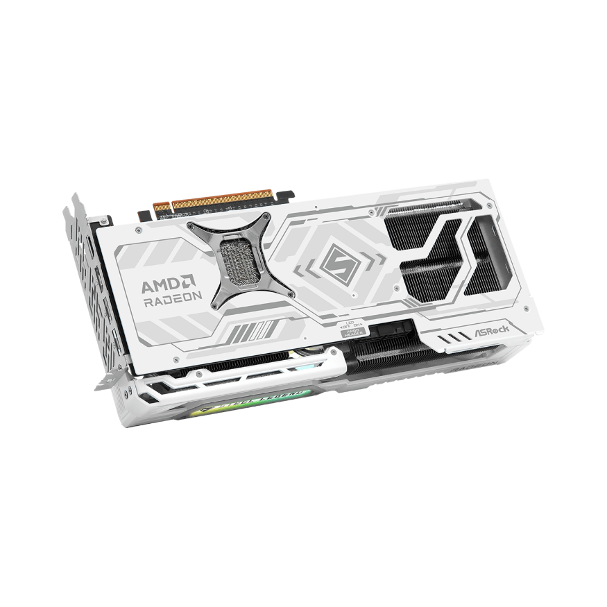 Đúng với tinh thần Steel Legend, chiếc card RX 9070 Steel Legend được hoàn thiện với chất lượng cao. Backplate kim loại không chỉ tăng tính thẩm mỹ mà còn giúp chống cong PCB. Khung kim loại gia cố thêm độ chắc chắn, hạn chế tình trạng sag khi lắp trong case.