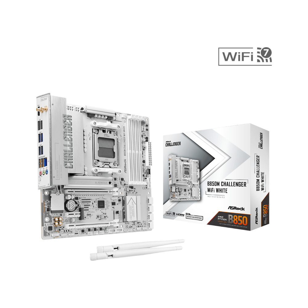 B850M Challenger WiFi White tích hợp WiFi 7 chuẩn 802.11be, mang lại tốc độ truyền dữ liệu cao hơn, độ trễ thấp hơn và khả năng kết nối ổn định hơn.