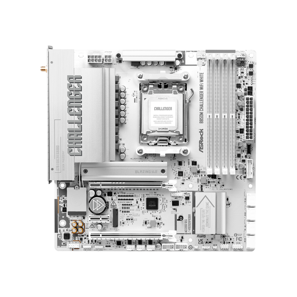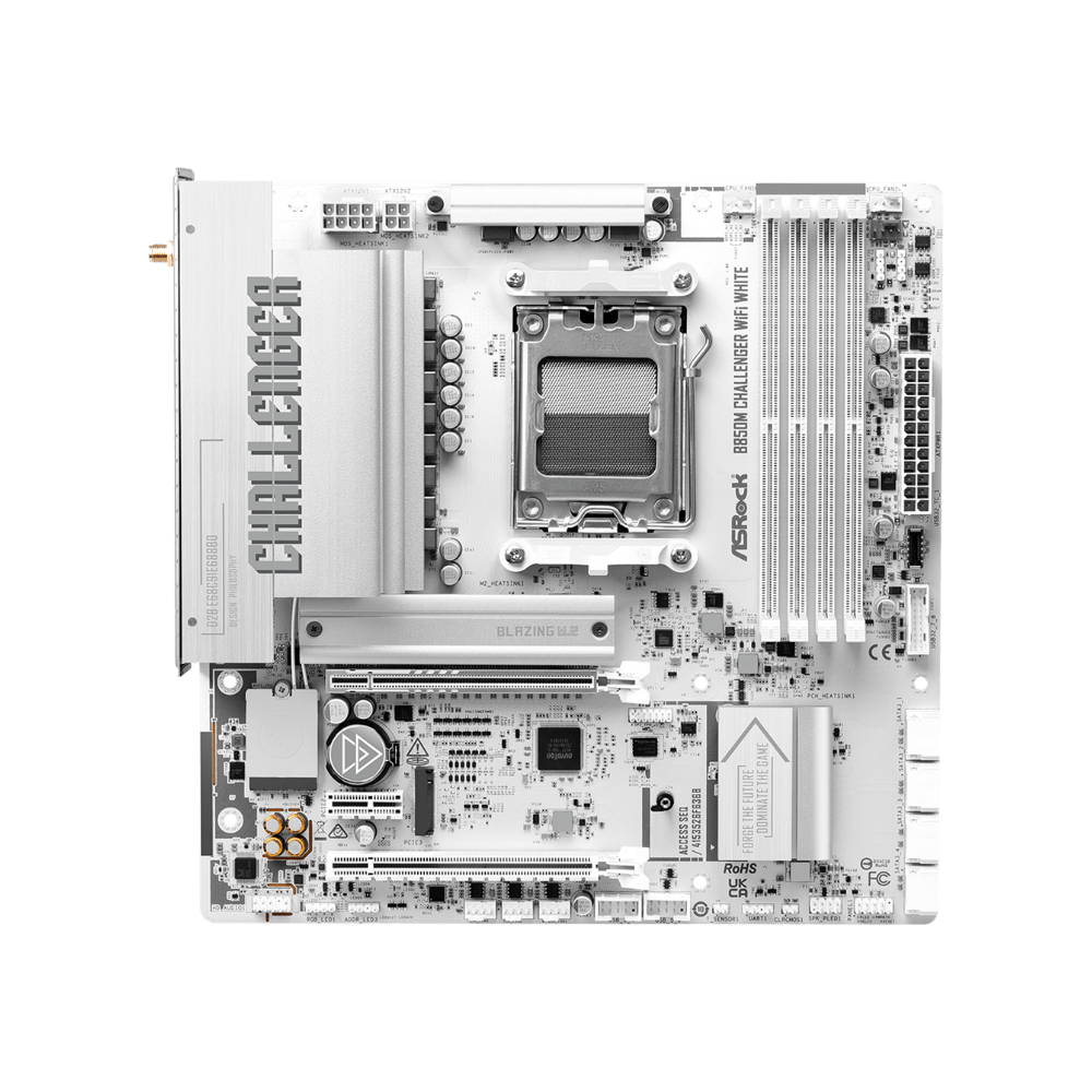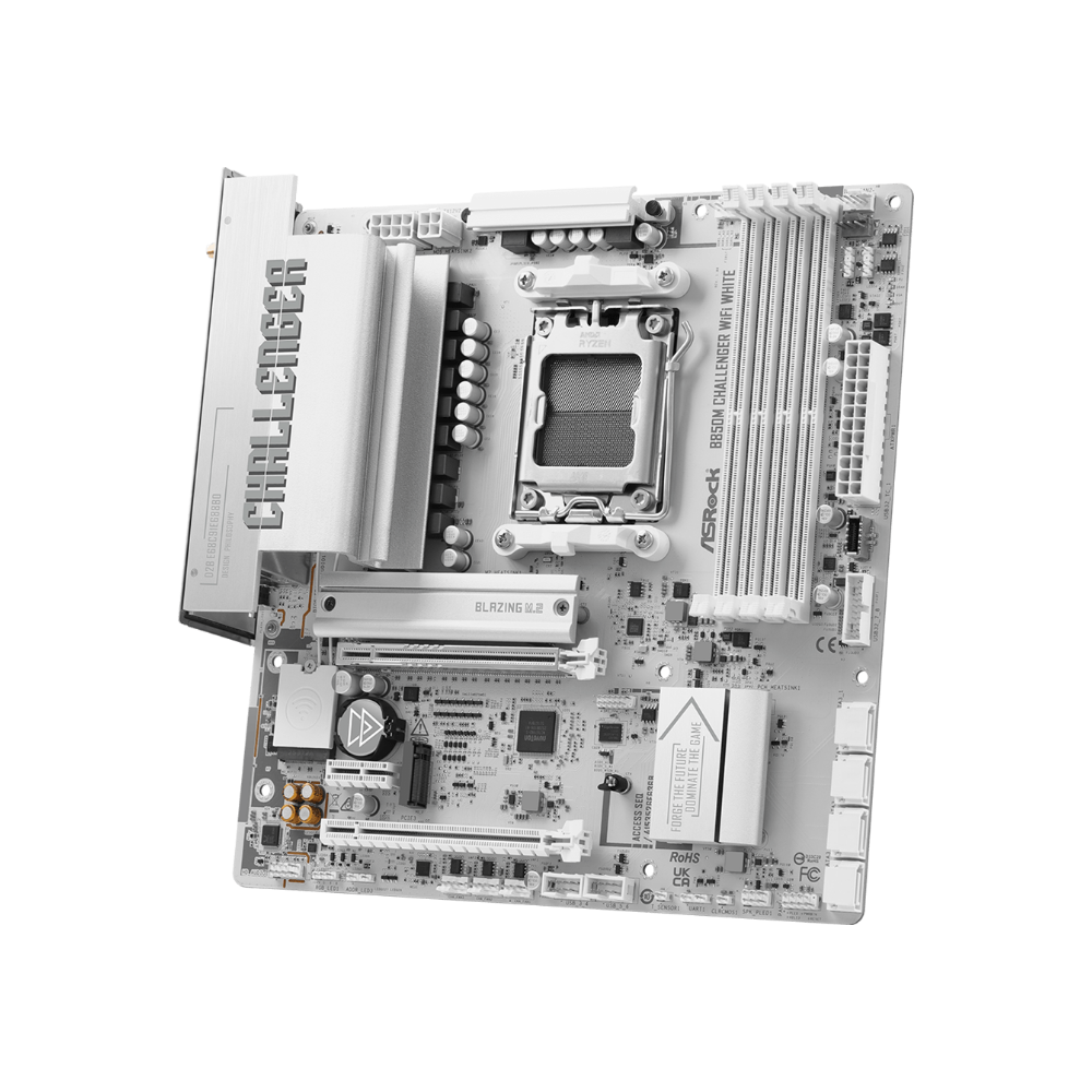 Challenger Series đại diện cho tinh thần chơi game táo bạo và không ngừng tiến hóa. Phiên bản B850M Challenger WiFi White sở hữu thiết kế trắng đồng bộ từ PCB đến heatsink, giúp trở thành điểm nhấn nổi bật cho các bộ PC build tone trắng.