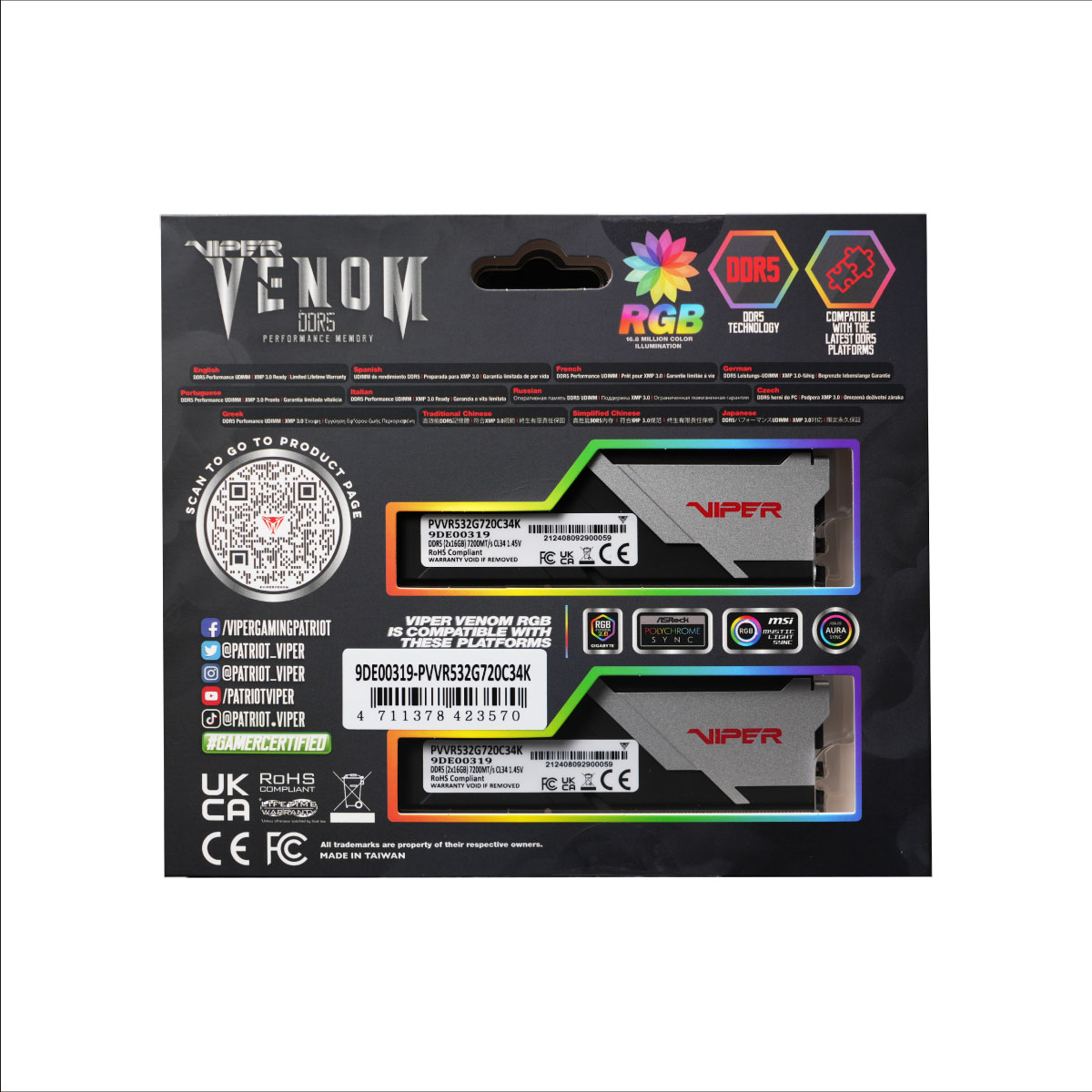 Nâng cấp PC ngay với Ram Patriot Viper Venom DDR5 6000 16GB để tận hưởng tốc độ đỉnh cao và trải nghiệm mượt mà!