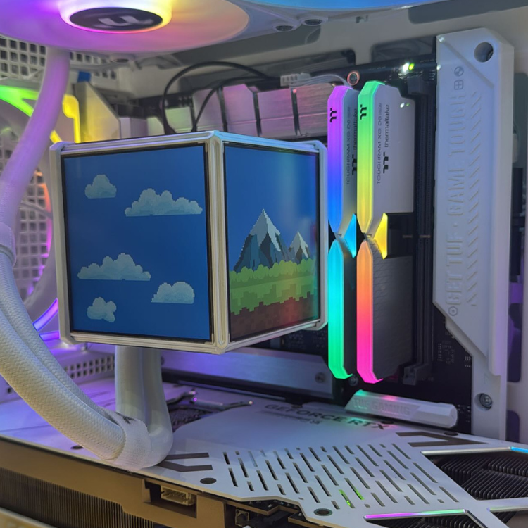 Thermaltake MINECUBE 360 Ultra ARGB là bước tiến mới nhất của hãng trong dòng tản nước AIO 360 mm. Sản phẩm không chỉ gây ấn tượng nhờ thiết kế “Minecraft-style” độc đáo mà còn được trang bị 4 màn hình LCD 3.95 inch hiển thị nội dung theo thời gian thực, mang lại trải nghiệm vừa mát – vừa đã mắt.